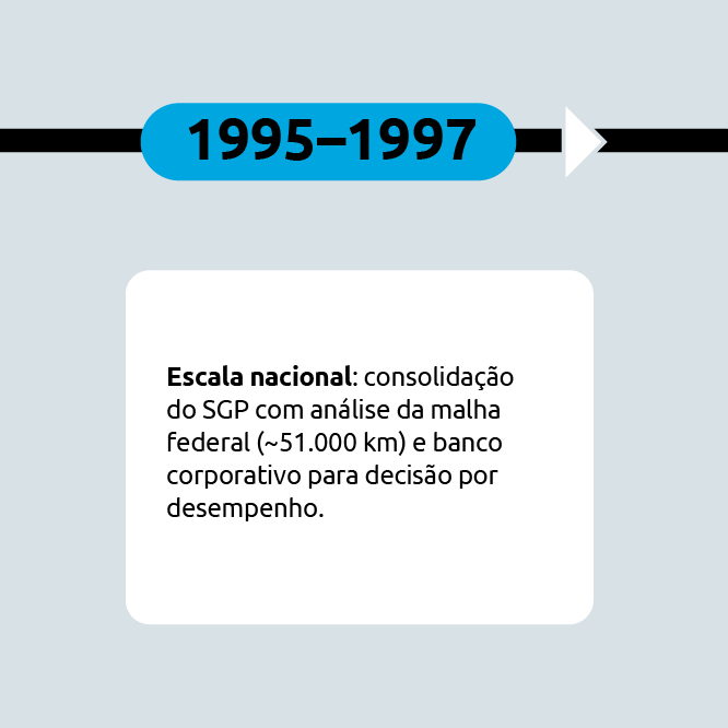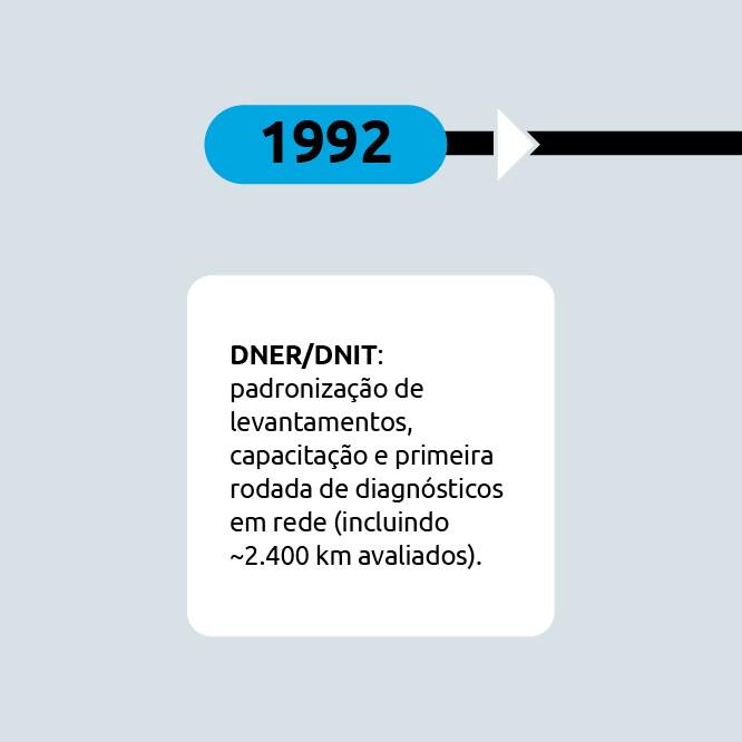 Ao longo de três décadas, estruturamos a gestão de pavimentos no Brasil conectando dados de campo (FWD, IRI, LVC/LVD, defeitos, tráfego) a modelos de desempenho (HDM) e a sistemas corporativos de decisão (SGP/SIGAPLAN). A jornada começa no DNER/DNIT no início dos anos 1990, quando padronizamos levantamentos, formamos equipes e inauguramos análises em rede que transformaram dados dispersos em programações plurianuais de manutenção e restauração. Na metade da década, a abordagem ganhou escala nacional, com banco de dados único e priorização orientada por desempenho.