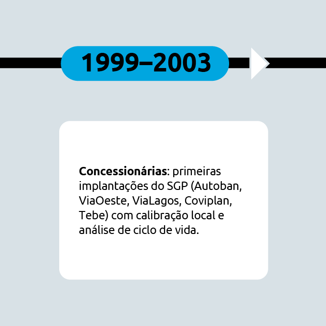 No fim dos anos 1990 e início dos 2000, a metodologia migrou para concessionárias (Autoban, ViaOeste, ViaLagos, Coviplan, Tebe), com calibração local dos modelos e integração de custos do ciclo de vida. Em seguida, avançamos nos DERs, com destaque para o DER-RJ, consolidando rotinas de diagnóstico, cenários orçamentários e auditoria técnica. Na década de 2010, o SIGAPLAN/DNIT unificou painéis executivos, acompanhamento de contratos e análises HDM em ambiente web, facilitando decisões e transparência.