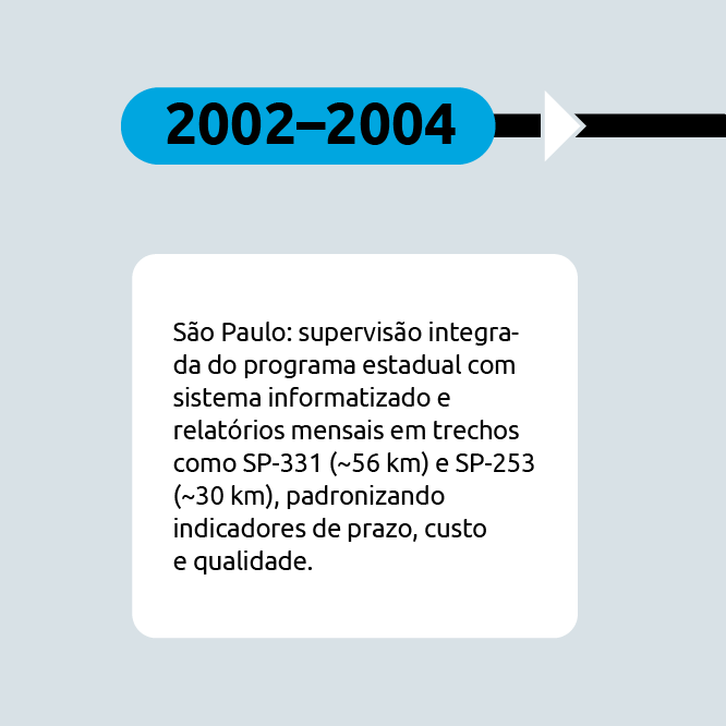 Na execução, supervisão independente, medições auditáveis e trilhas de auditoria asseguram prazo, custo e qualidade; no socioambiental, monitoramentos de água, ruído, flora e fauna, PRAD e comunicação social reduzem riscos e passivos. Em segurança viária, avaliações iRAP estruturam um plano de contramedidas por benefício/custo, enquanto o SGP organiza prioridades de manutenção e restauração com cenários plurianuais.